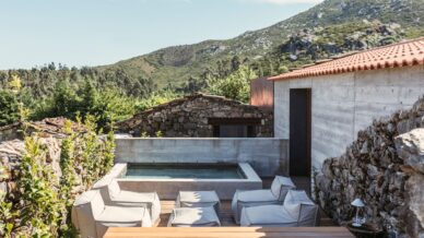Propriedade rural na margem do Lago do Alqueva, em Mourão, Alentejo, terra que é de paragem, de silêncio, de luz e Natureza. A casa, com seis quartos e capacidade máxima de 12 pessoas, recupera a sabedoria das tradições locais, na simplicidade em branco e xisto, na sombra dos alpendres e na relação cuidada com a paisagem. Tecidos claros, mantas artesanais, paredes brancas com apontamentos em xisto, e alpendres sombreados por caniço fazem do local um sítio encantador. Nesta época do ano a lareira dá um conforto especial ao lugar que pode ser alugada na totalidade. No exterior encontra bicicletas para prazerosos passeios pelo monte.