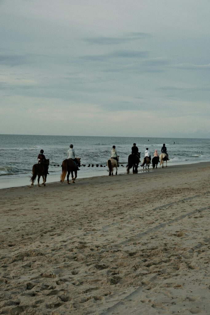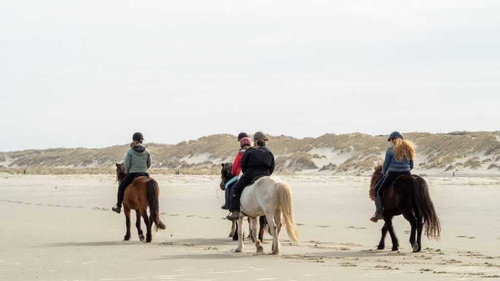 Entre dunas, lagoas e areais extensos, montar a cavalo junto ao mar é uma forma tranquila de conhecer o Algarve. O percurso passa por zonas menos frequentadas e revela ângulos distintos da paisagem costeira. Adaptada a diferentes níveis de experiência, a atividade é acompanhada por guias que garantem segurança e orientação. Mais do que um simples passeio, é uma oportunidade para observar aves, sentir a brisa do Atlântico e desfrutar da calma longe da azáfama das praias mais conhecidas.