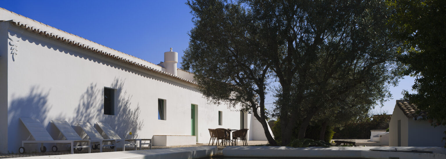 A Casa do Eirado foi recuperada a partir das ruínas de uma habitação rural algarvia do final do século XIX, pertencente à família Simões. O projeto foi elaborado pelo proprietário, o Sr. José Simões, e pode ser considerado uma homenagem às suas raízes.