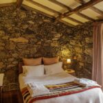 Aqui, nada é feito em série. As casas foram restauradas com materiais da região, mobiliário reaproveitado e detalhes pensados ao pormenor, criando ambientes que mantêm a autenticidade rural sem abdicar do conforto contemporâneo. Os muros de granito convivem com madeiras quentes, cozinhas equipadas e terraços privados, e no exterior a piscina comum, rodeada de verde e com vista de montanha, convida a longos fins de tarde sem pressa.